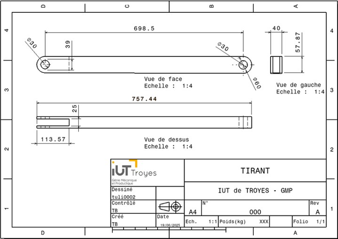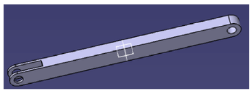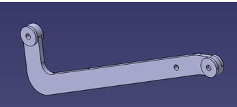 Le tirant est en liaison pivot avec le bras et l’étrier. Sa longueur est dépendante des points donnés, celle définis dans le cahier des charges. Celui-ci n’a rien de spécifique. Les angles abrupts ont été réduits au maximum pour des raisons de concentration de contraintes.