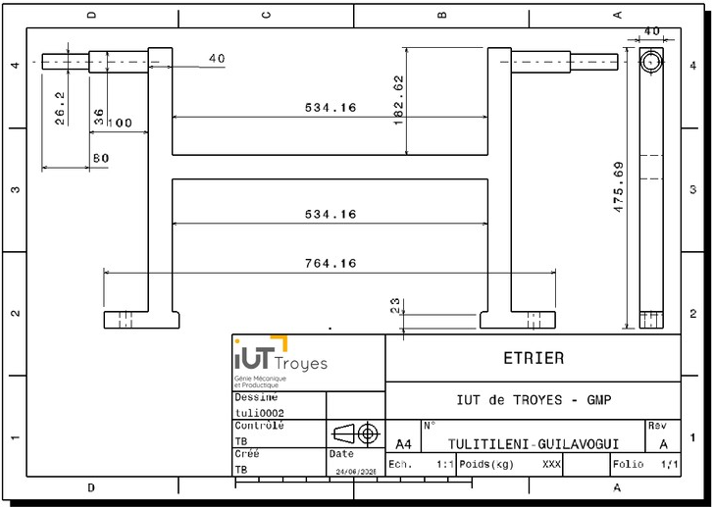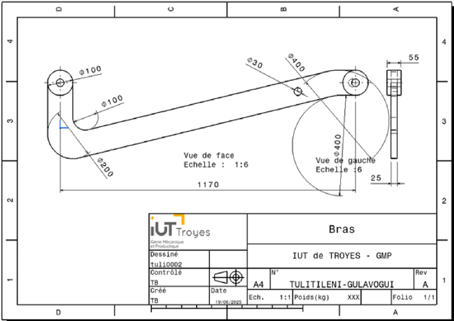 Dans cette Situation d’Apprentissage et d’Evaluation, j’ai appris à concevoir et dimensionner une pièce mécanique respectant un cas concret d’utilisation. J’ai su appliqué les notions vu en cours de Dimensionnement De Structure (DDS), en Conception CAO et en Résistance Des Matériaux (RDM) pour réussir à valider le Cahier Des Charges Fonctionnel (CDCF). J’ai également appris à isoler un sous-système faisant partir d’un ensemble plus grand envi d’étudier ses interactions avec son milieu extérieur en terme d’efforts extérieurs et pour finalement aboutir au Principe fondamental de la Statique (PFS).
